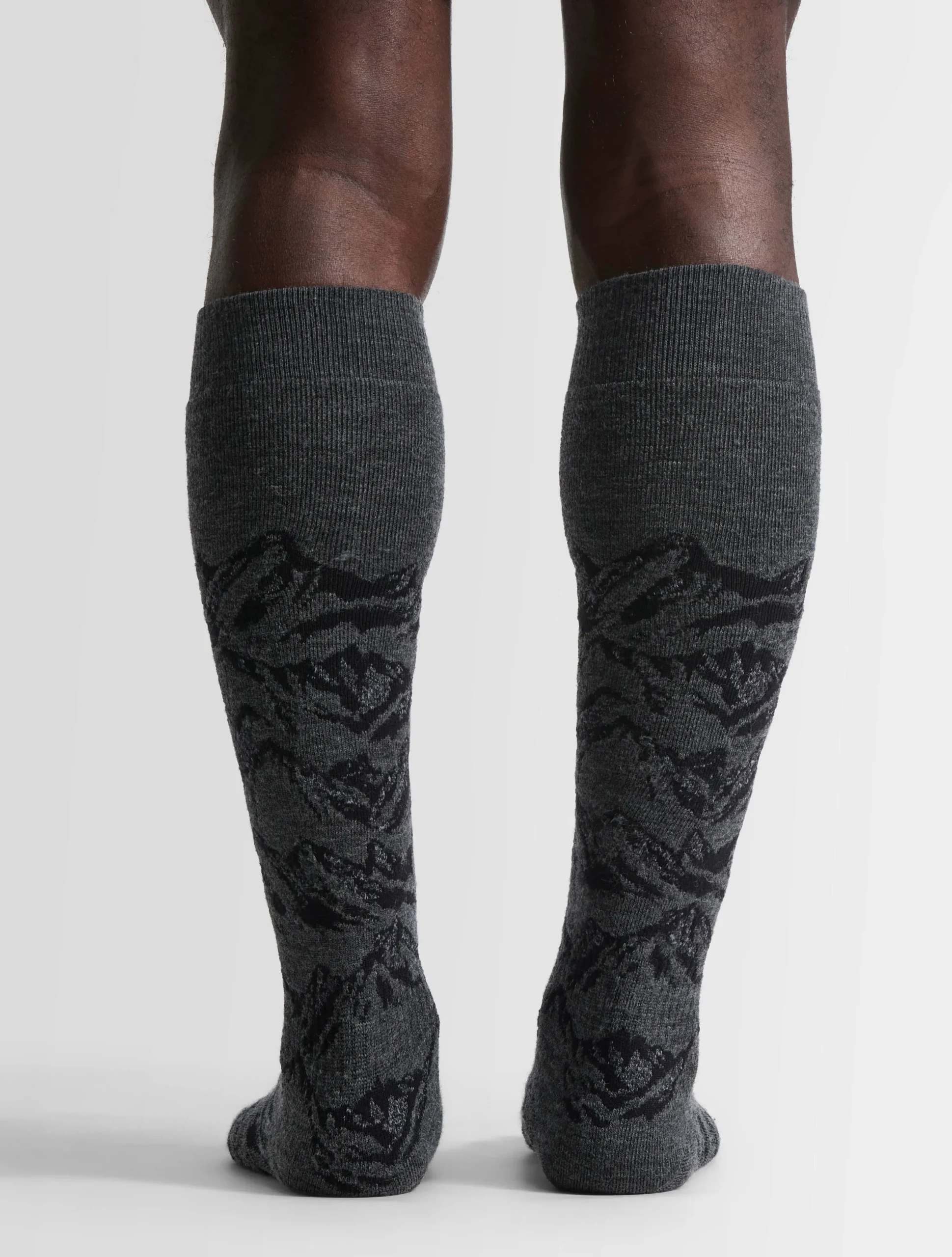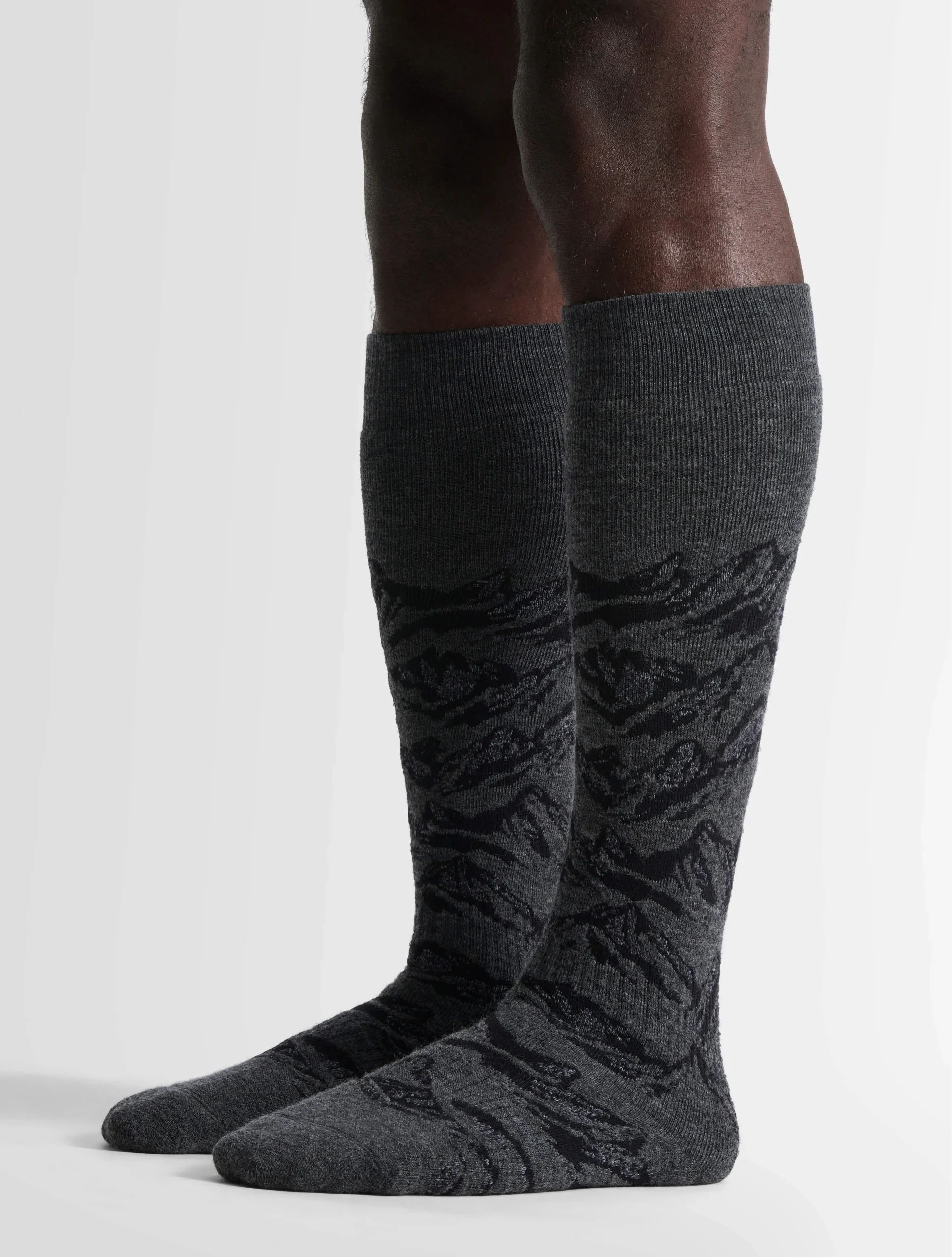 Les chaussettes montantes fantaisies Sock Mount III sont confectionnées en laine mélangée et bouclette intégrale, apportant confort et douceur. Un paysage de montagnes graphique et moderne orne le design. Ce modèle montant dispose de la technologie de séchage rapide.