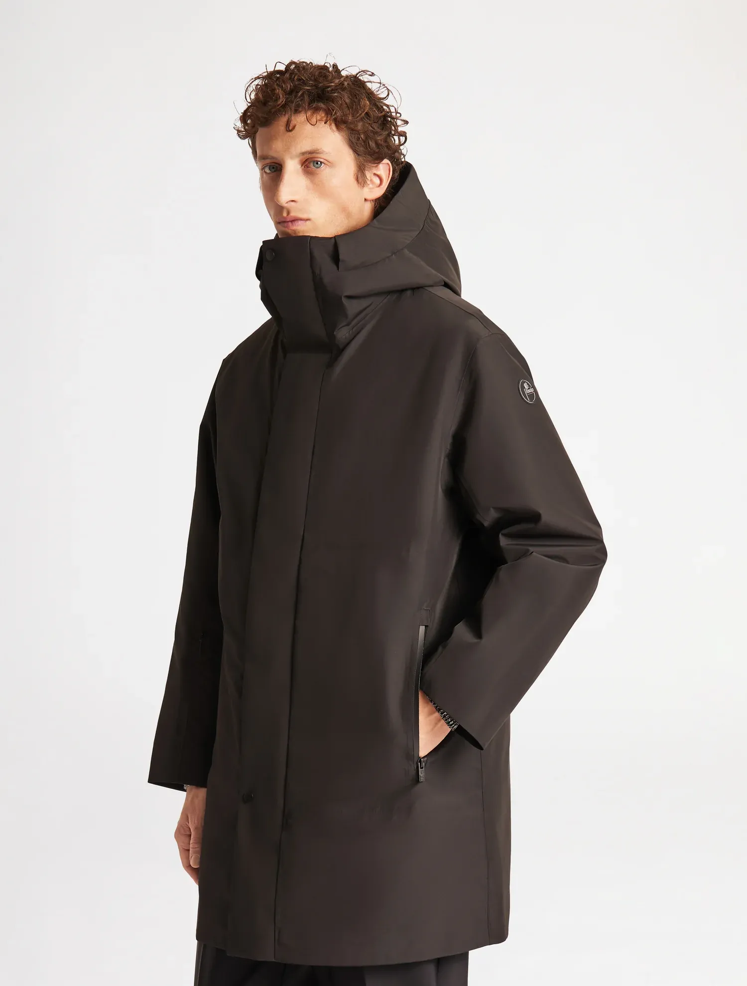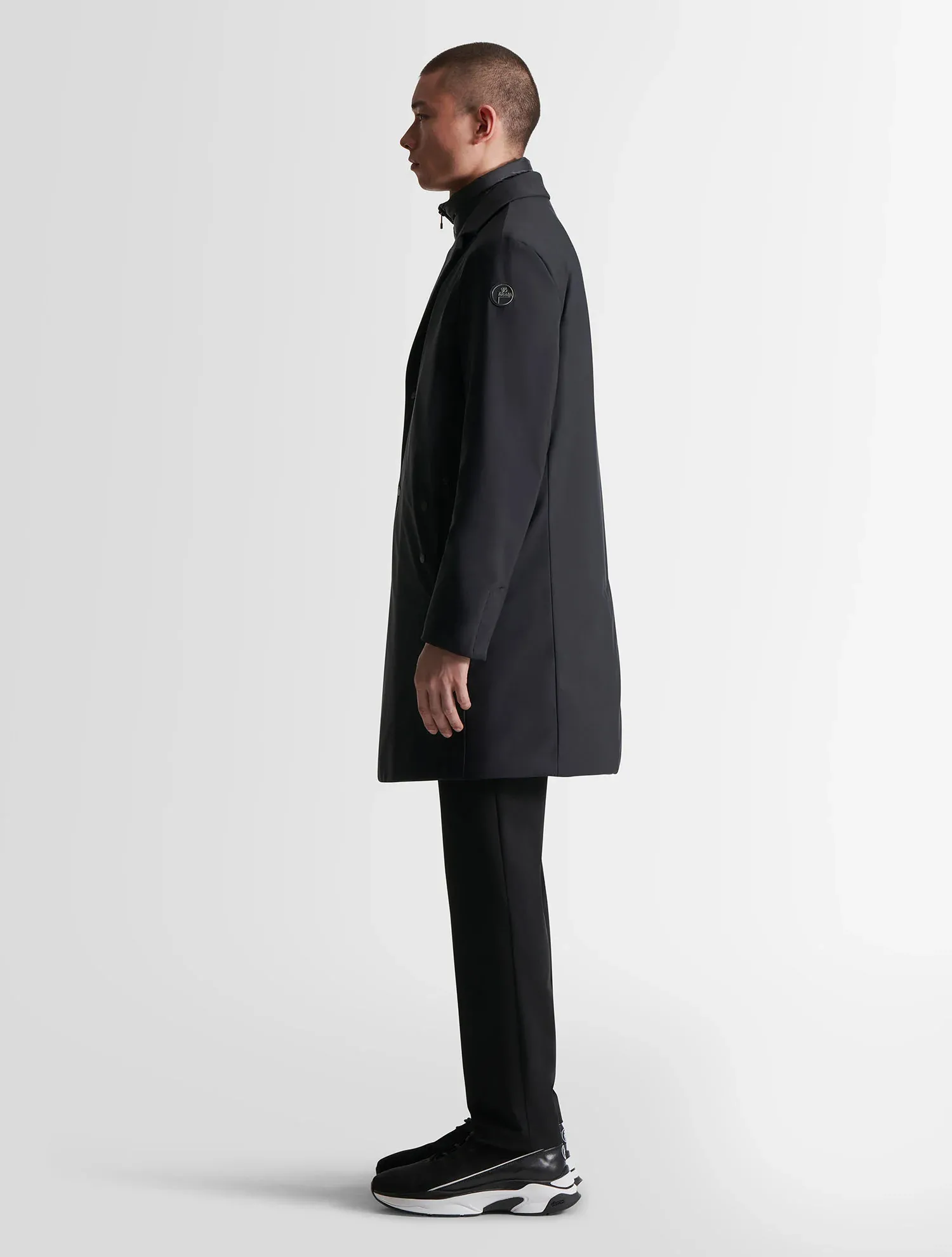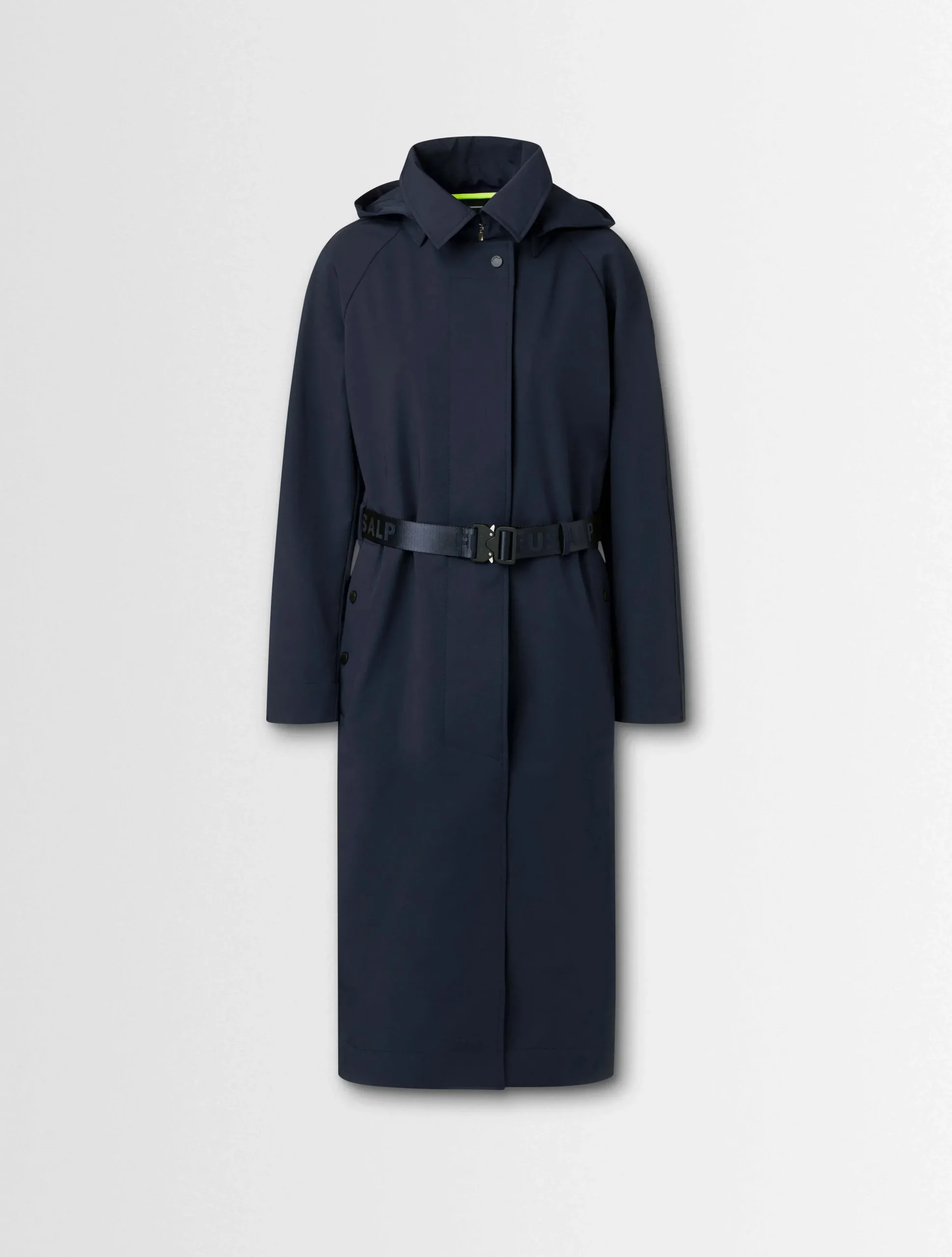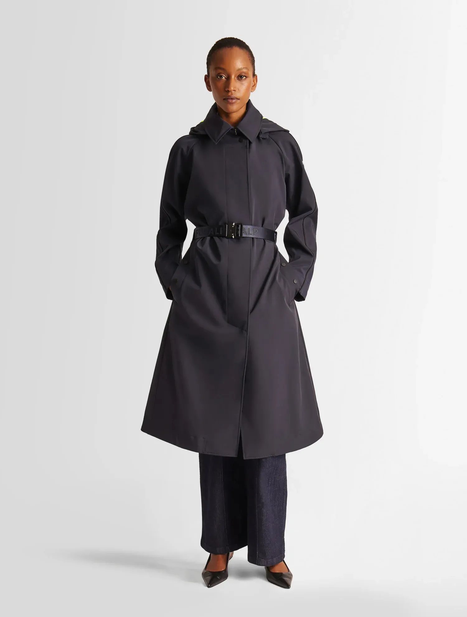 Le trench Greta présente une silhouette longue et enveloppante. Confectionné en sergé technique imperméable et respirant, sa coupe est rehaussée d’une ceinture à la taille pour une allure structurée et élégante. Une version plus casual et moderne du design classique intemporel.
