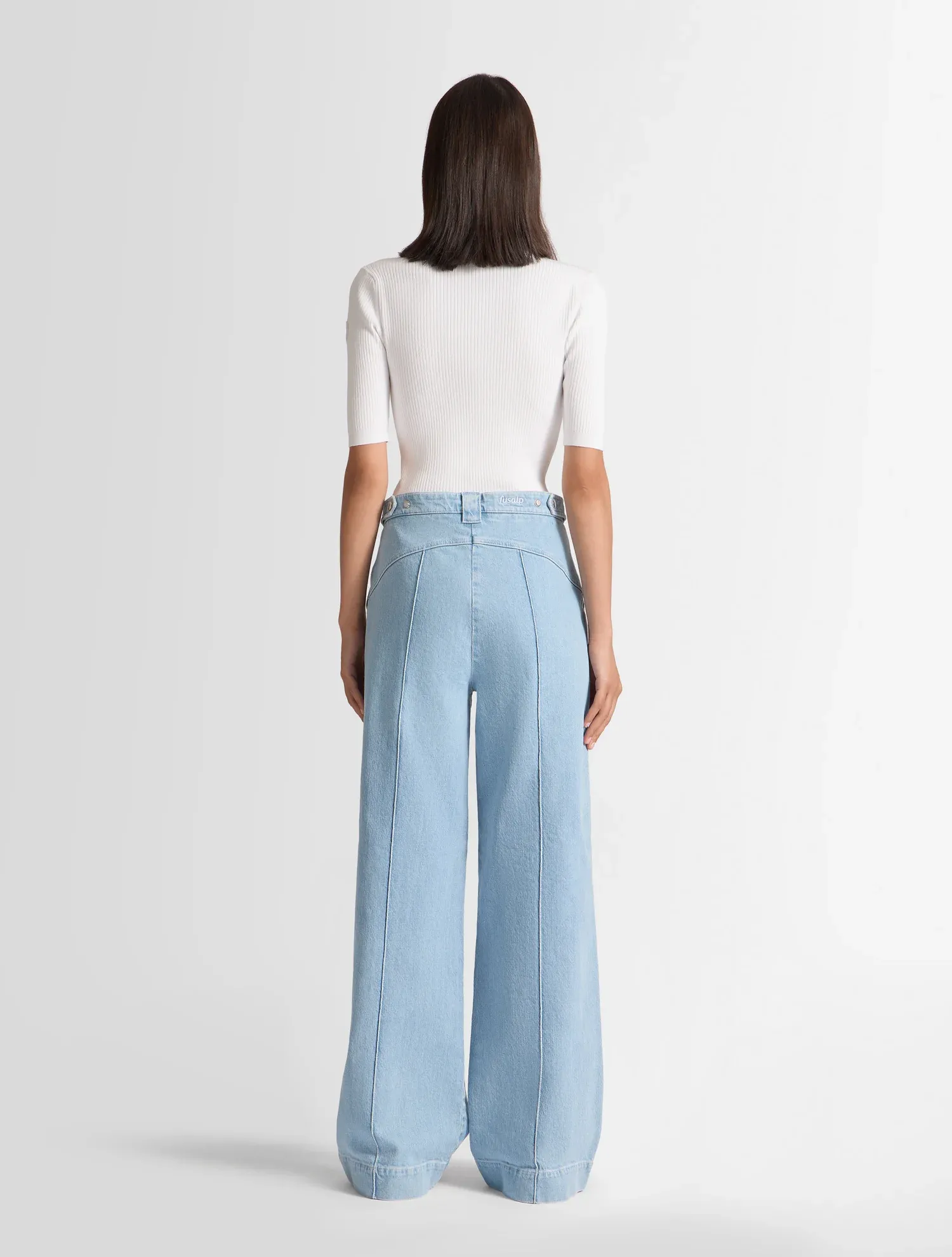 Le pantalon Noaleri subjugue par son volume glamour et féminin. Conçu en denim délavé, le modèle s’inspire d’une esthétique très seventies avec sa taille haute et une coupe évasée. Une couture réseau le long de la jambe, touche emblématique de la Maison, rehausse son allure élégante et graphique.
