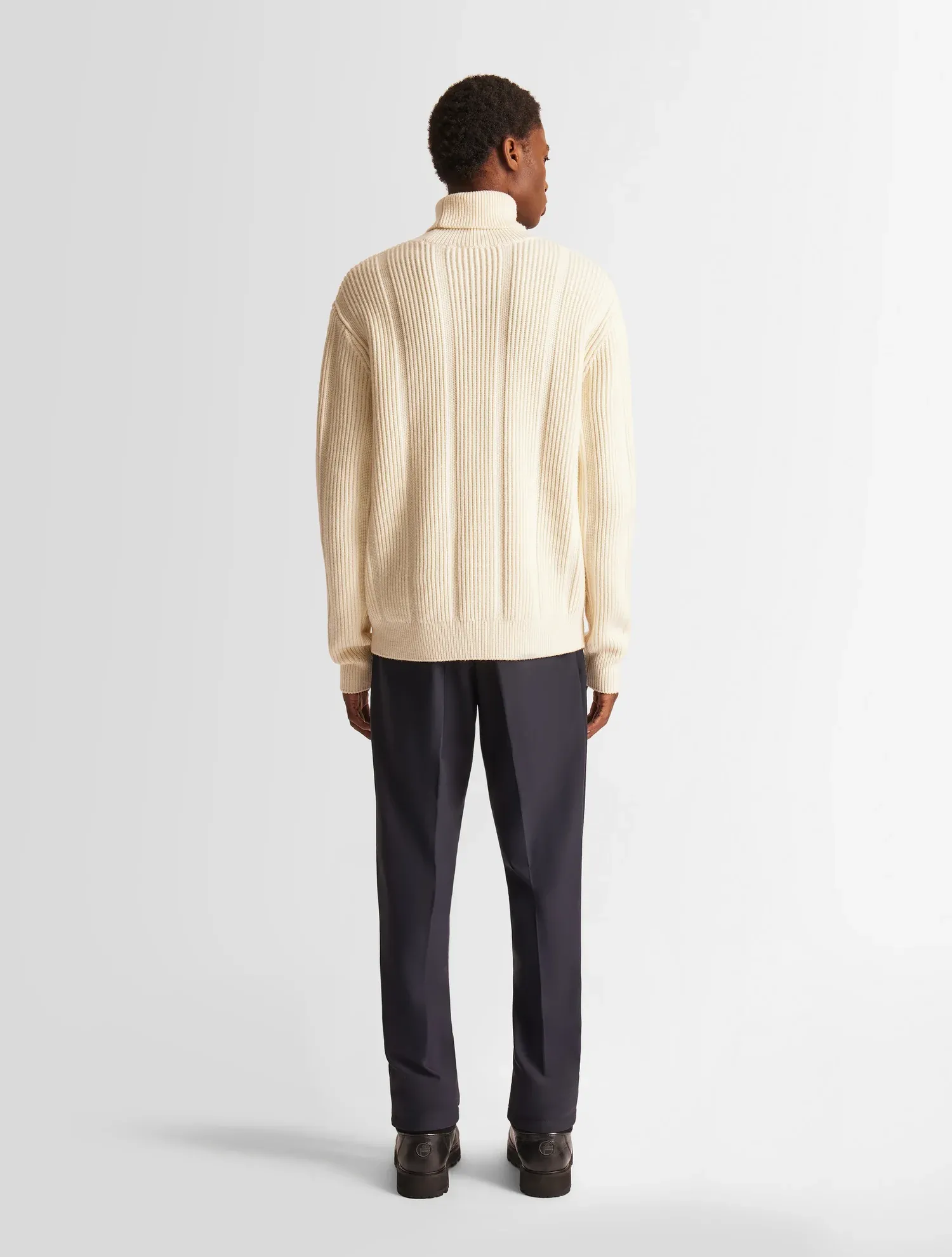 Le pull Aristote se distingue par sa silhouette élégante et graphique. Confectionné en laine mérinos jauge 5, le pull à col montant est épais et promet une chaleur optimale. Un jeu de point se précise au niveau de la maille pour créer une impression de rayures verticales. Il peut être associé à un pantalon de la collection pour une allure raffinée et intemporelle.