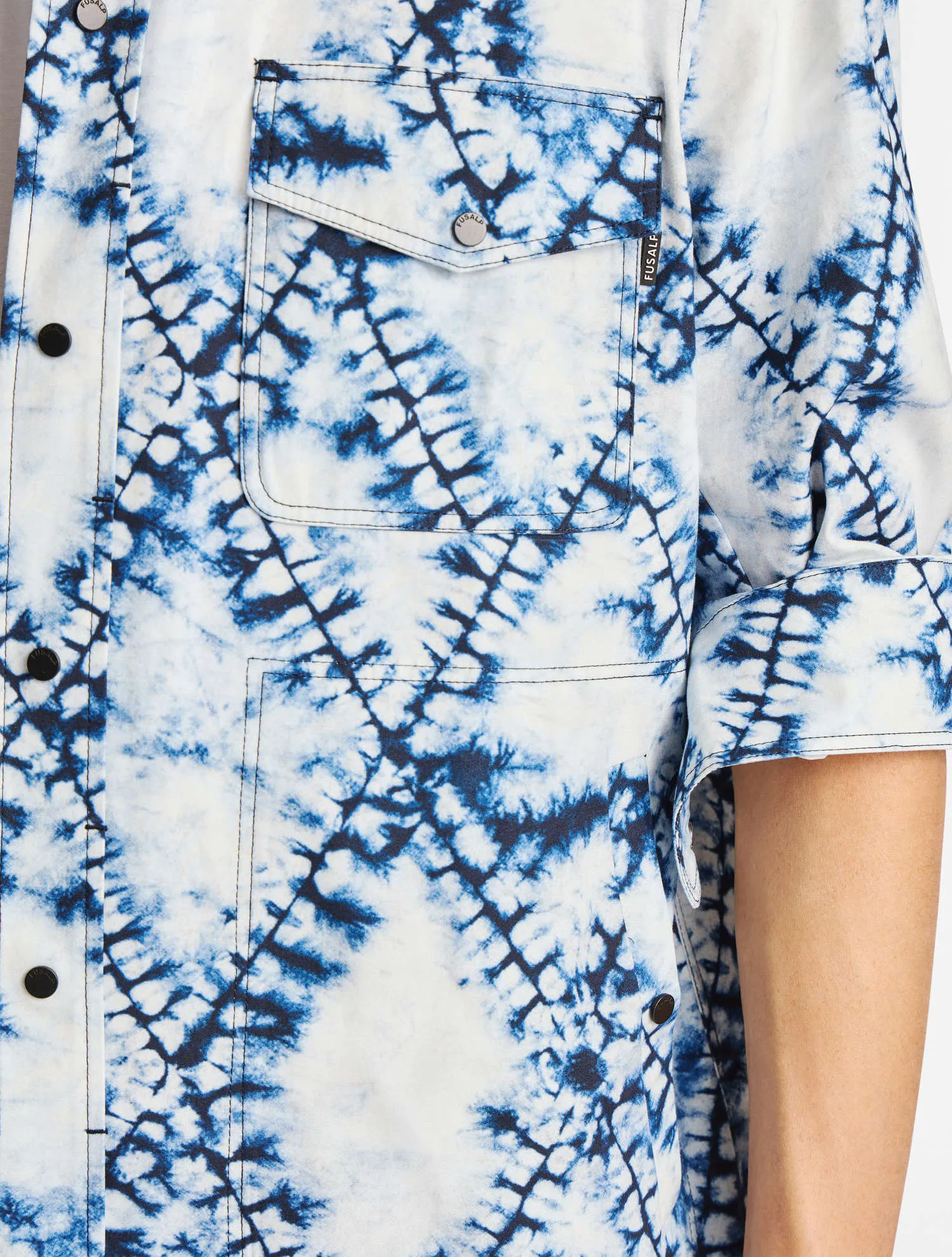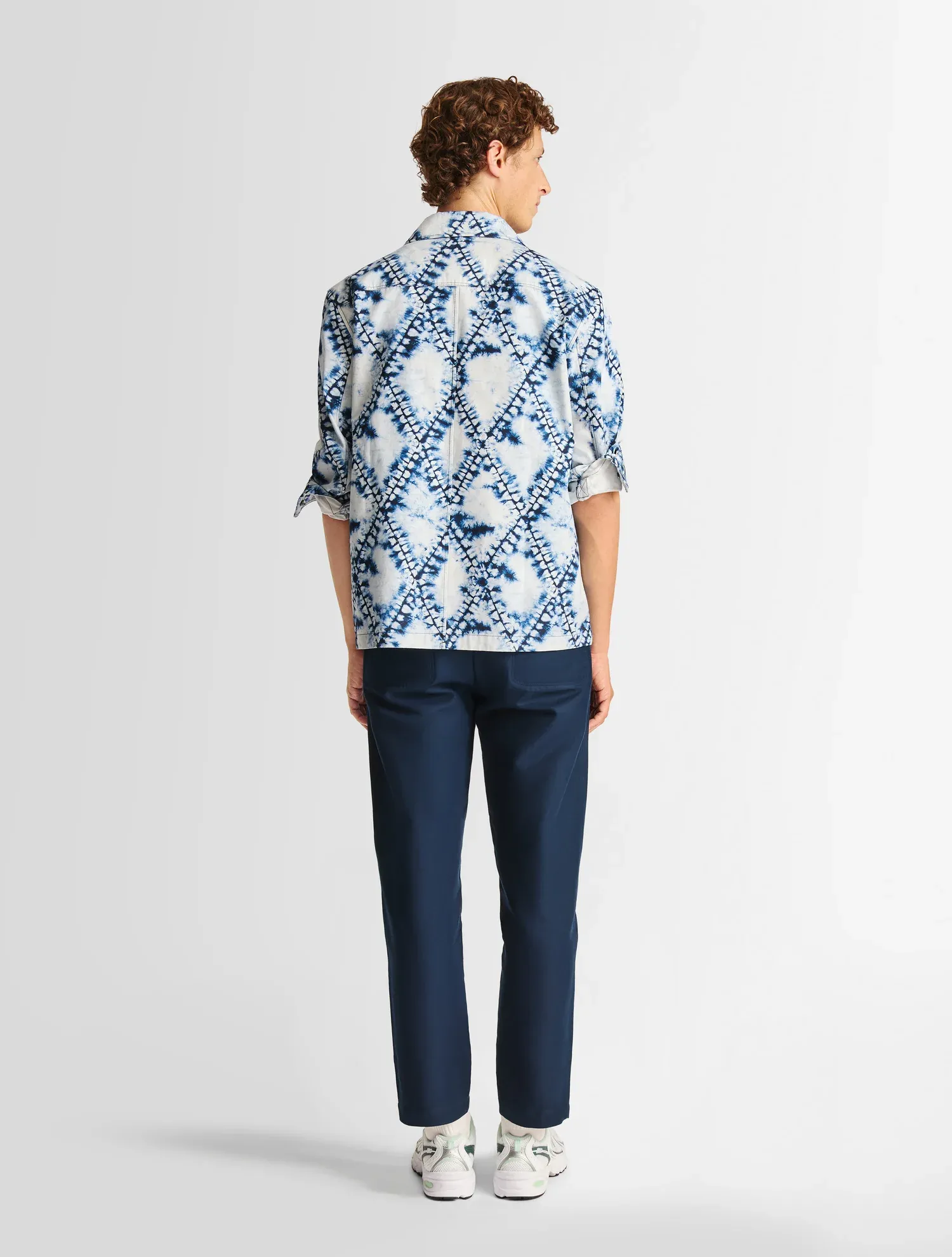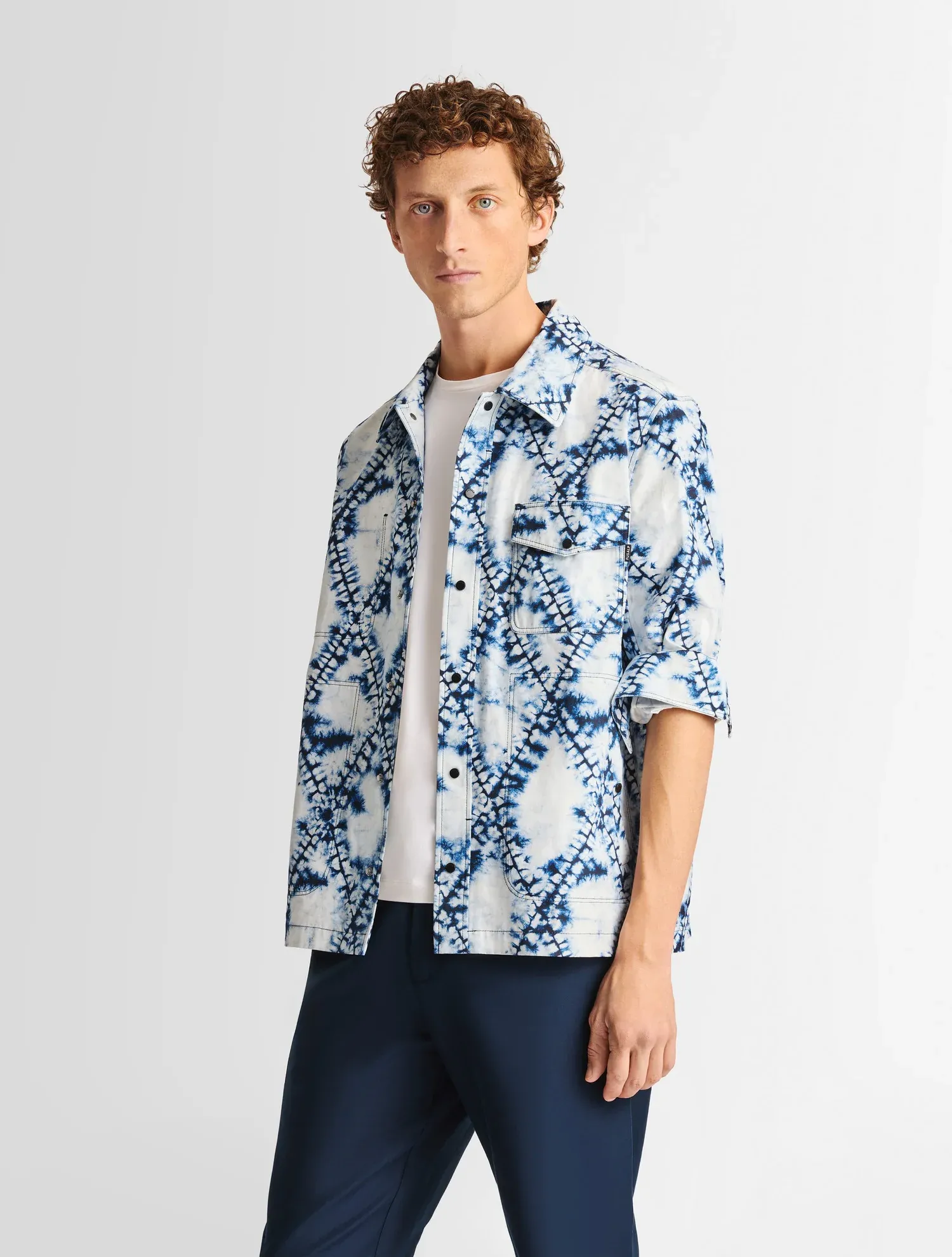 La surchemise Jaymeo Tie conjugue polyvalence et silhouette graphique. Confectionnée en popeline de coton légère, elle présente une coupe ample et confort, rehaussée du nouvel imprimé, un motif diamant – signature de la Maison – twisté en tie and dye. Le modèle dispose de nombreuses poches et se porte seul à l’intersaison ou sous un manteau en hiver. Associez-le avec le bermuda Suauno Tie assorti pour une allure audacieuse.