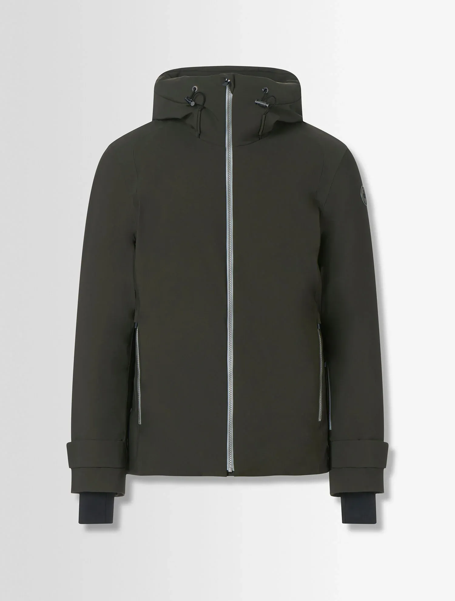 La veste de ski Emris est idéale par températures glaciales. Confectionnée en toile stretch imperméable et déperlante, elle est doublée de la membrane-approuvée Fusalp ainsi qu’un duvet Sorona® pour une thermie adaptée. Elle est rehaussée de coutures soudées et de zips réflectifs pour protéger du froid et du vent. Cette veste à l’esthétique minimaliste peut être associée à l’un des pantalons de ski de la collection.