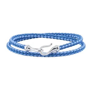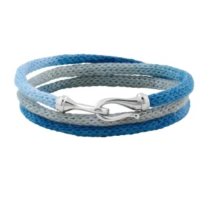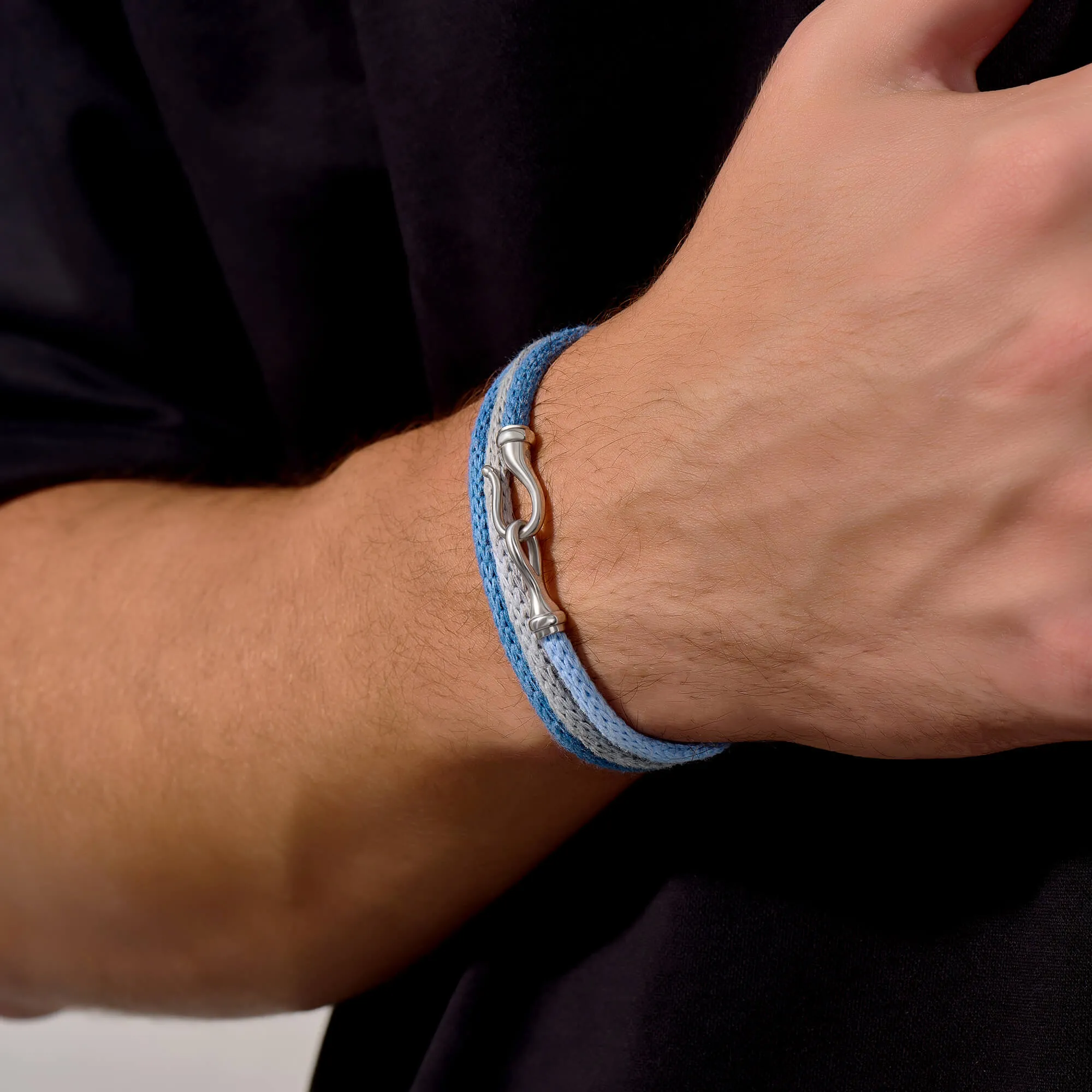Fish Hook Blue Cotton Wrap Bracelet in Silver