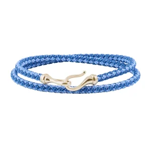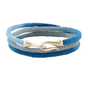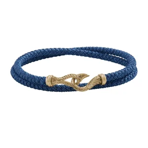 Fish Hook Blue Cotton Wrap Bracelet in Gold