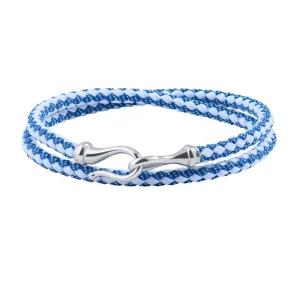 Fish Hook Blue and White Cotton Wrap Bracelet in Silver