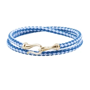 Fish Hook Blue and White Cotton Wrap Bracelet in Gold