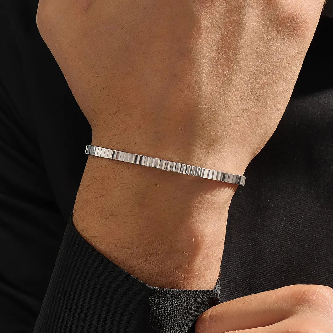 Diamond Minimal Pyramid Cuff – Solid Silver