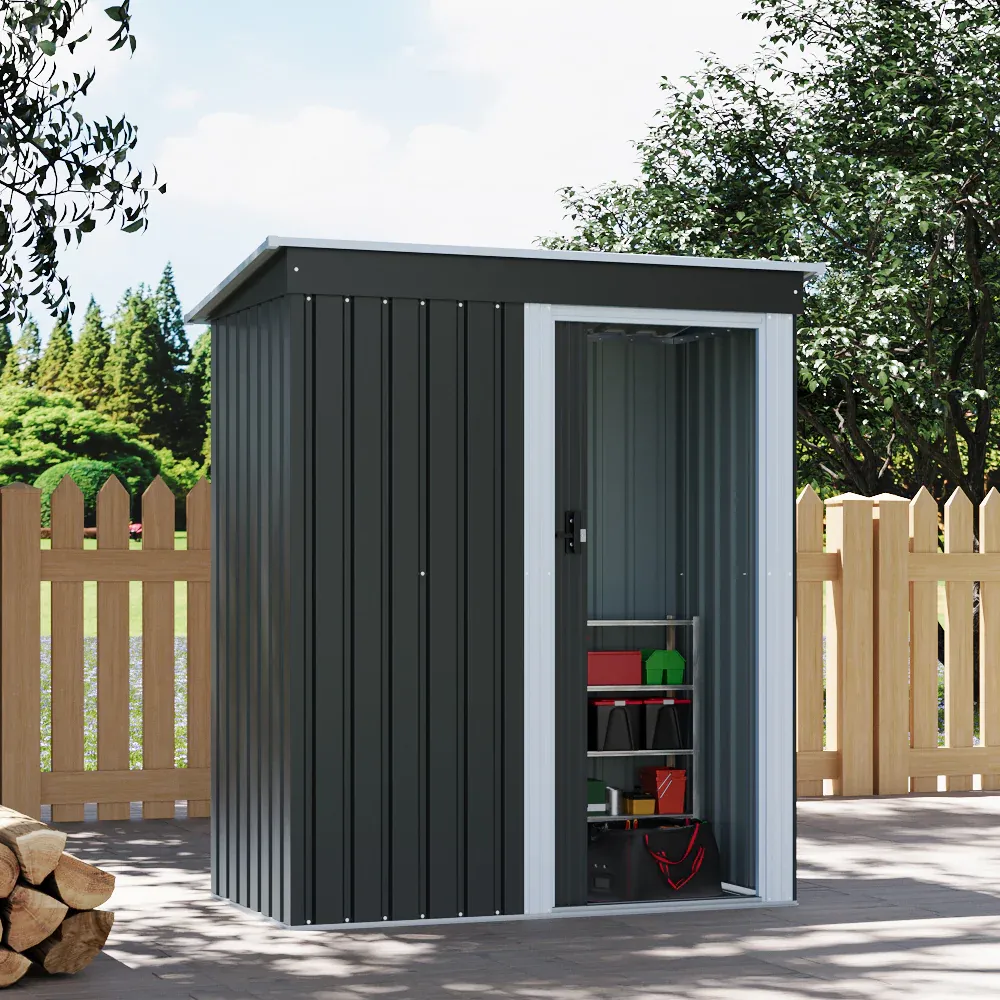 164CM Wide Steel Garden Storage Shed with Sliding Door and Sloped Roof