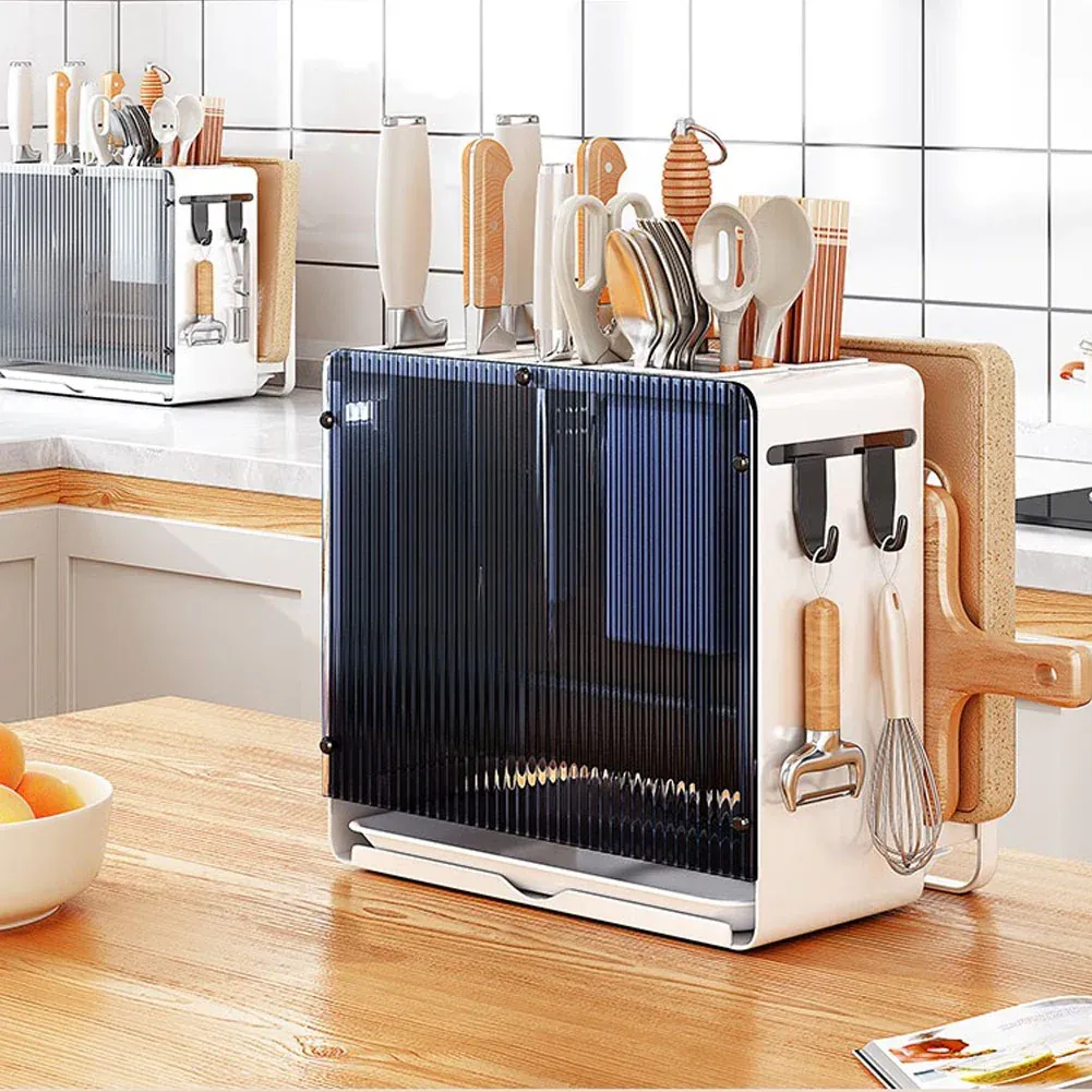 Acrylic Cutting Board Knife Block Storage Rack with Drainboard