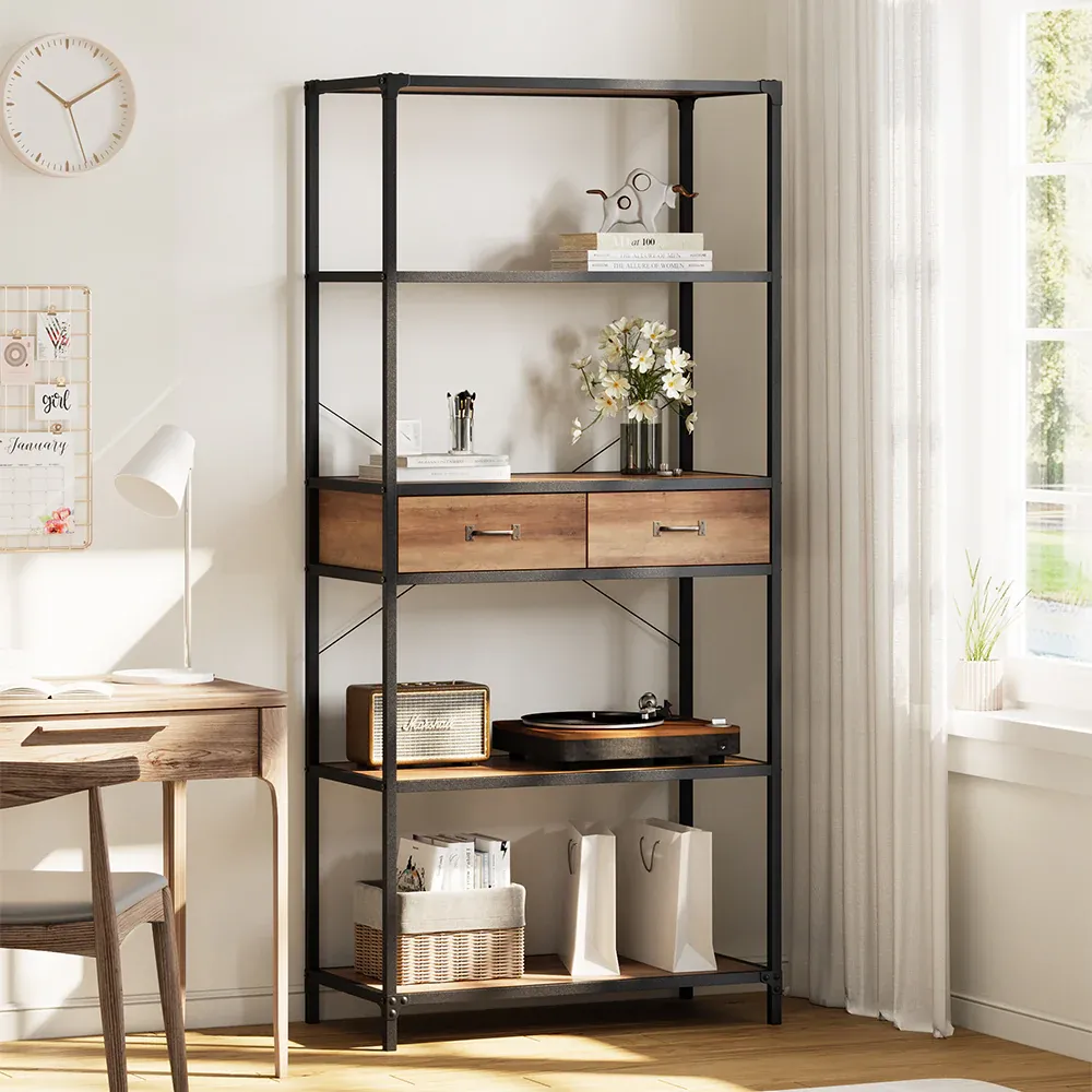 5-Tier Wooden Book Shelf with Drawers