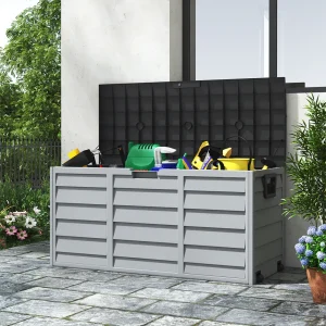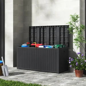 290L Plastic Lockable Grey Garden Storage Box with Black Cover